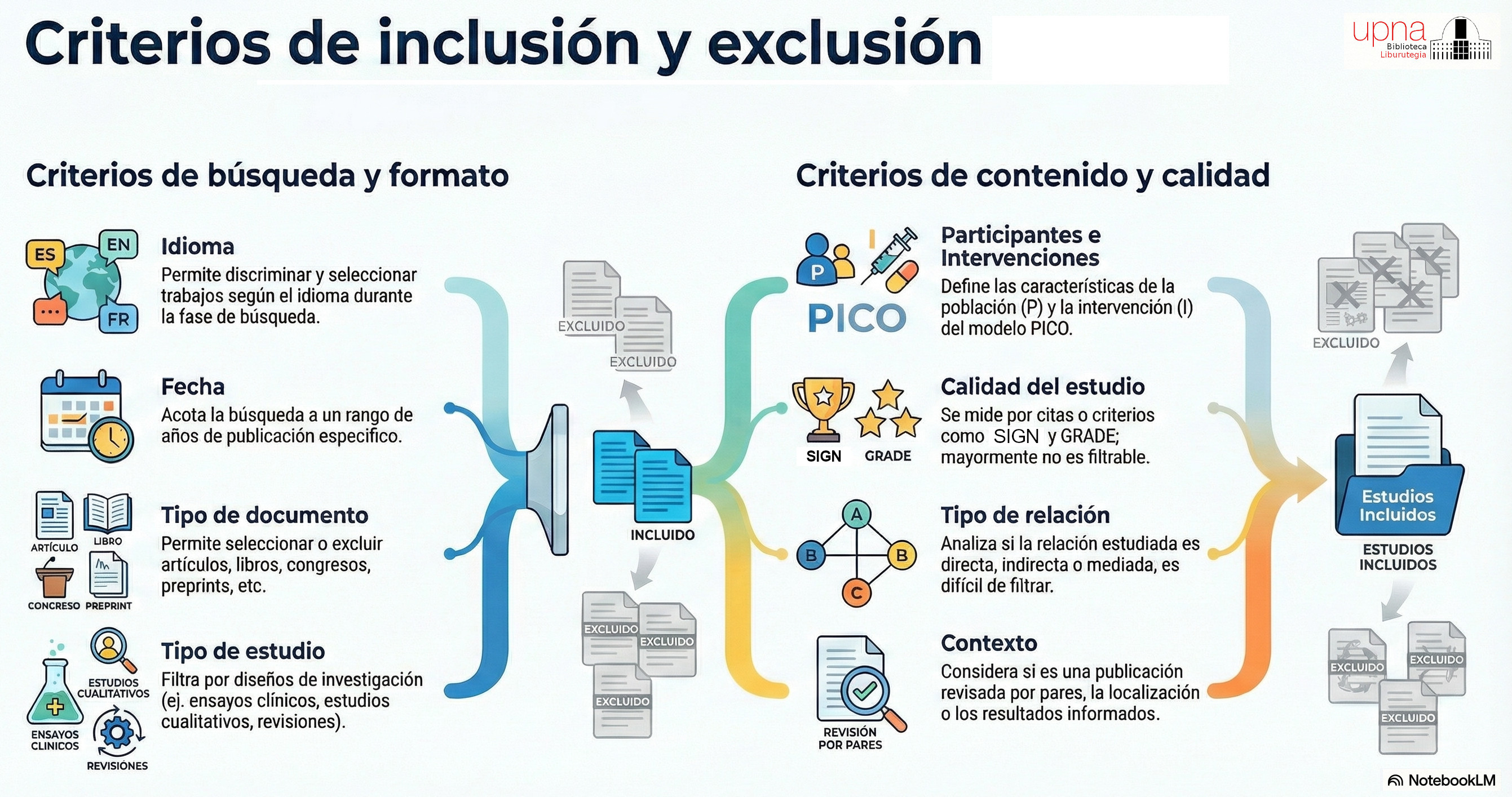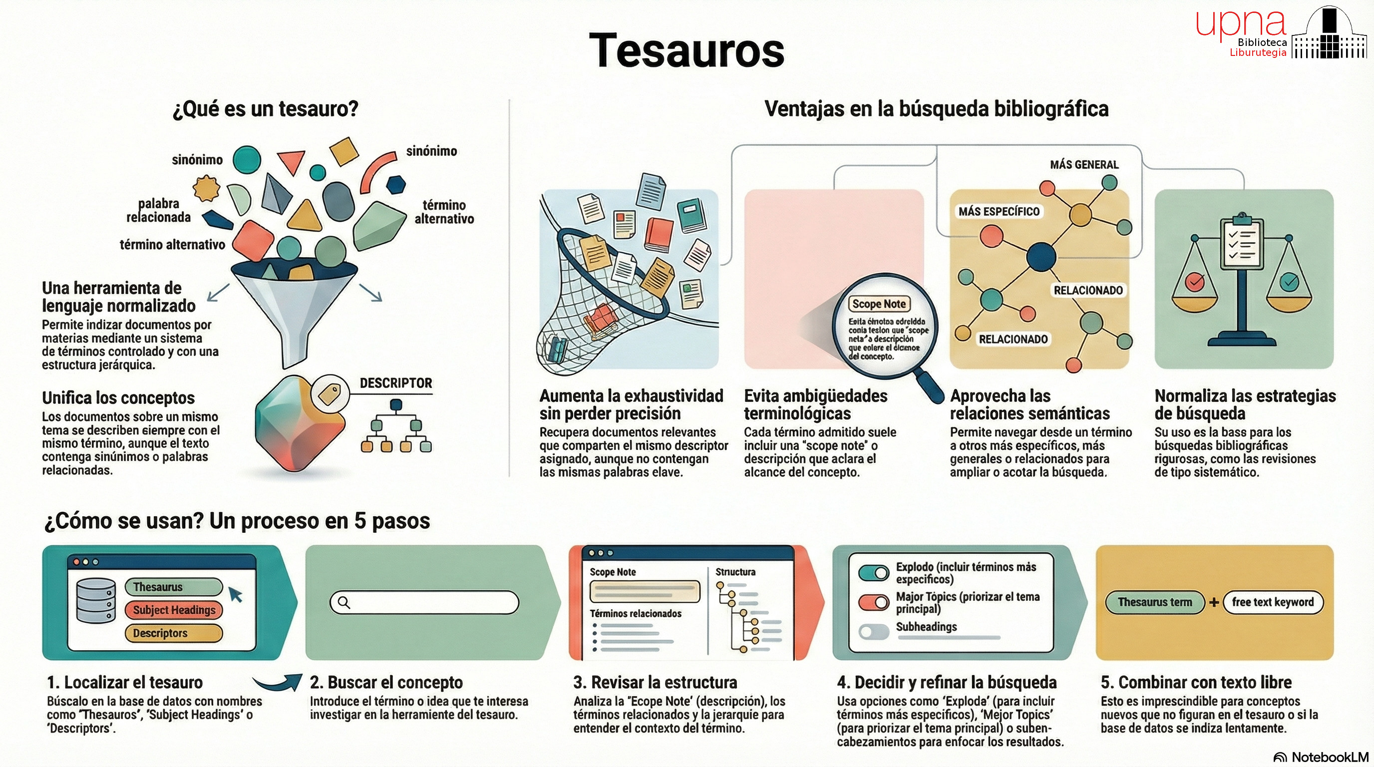 La Upna ha creado dos generadores de estrategias de búsquedas, uno más simple y otro más complejo.Facetas, términos y sinónimos